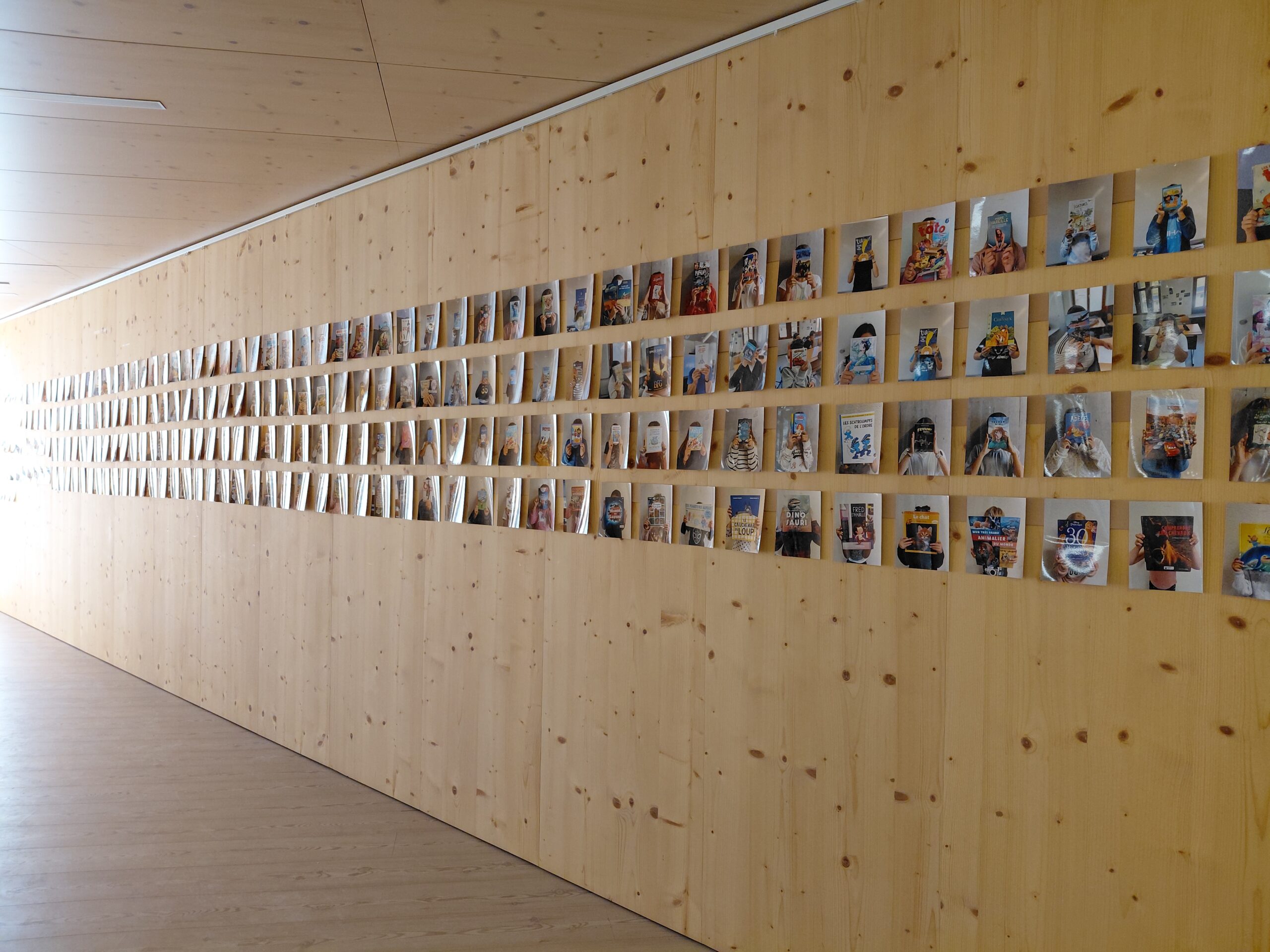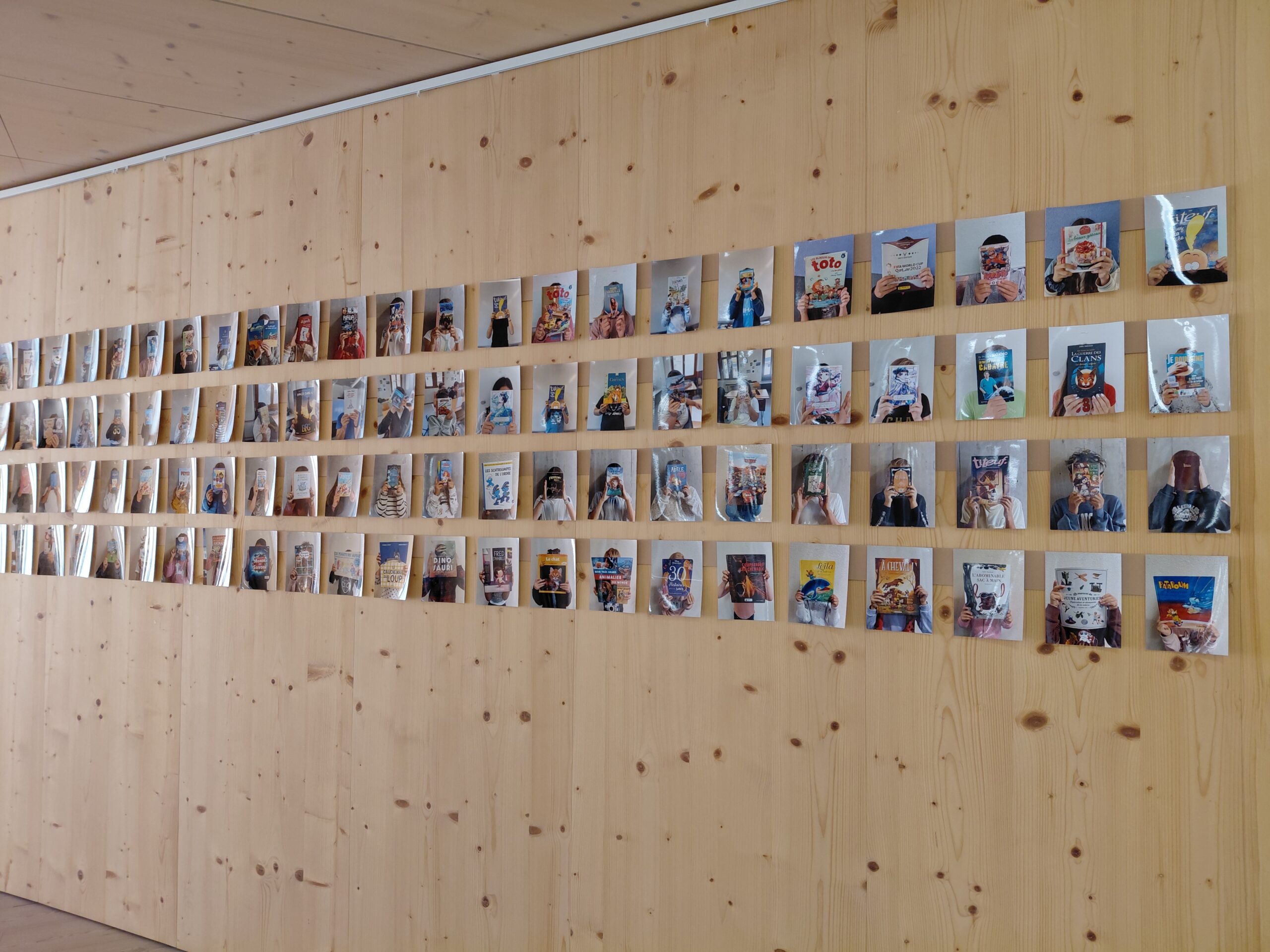 La commission de bibliothèque scolaire a créé le premier mur de nos lectures afin de valoriser le goût de lire au sein de l’école. Chaque élève a apporté de chez lui un livre qu’il apprécie particulièrement, puis s’est fait photographier avec son ouvrage.